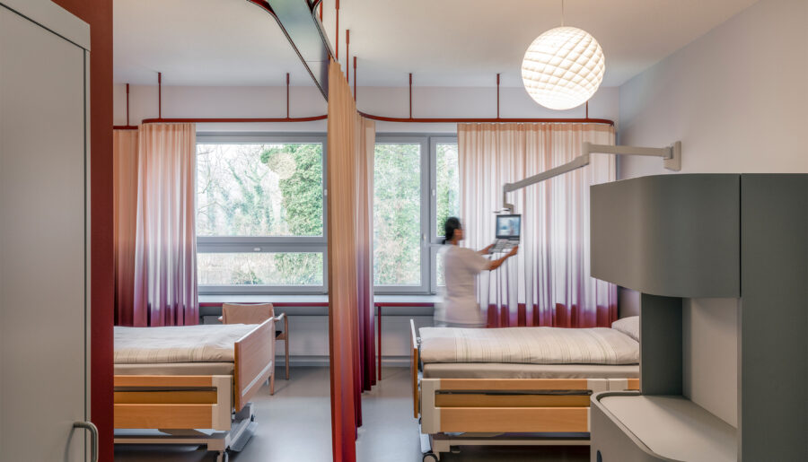 Durch ein innovatives Raumkonzept mit deutlich vergrösserten Nasszellen haben wir nun eine Umgebung geschaffen, die den Patientinnen und Patienten wohnlichen Komfort sowie ausreichend Privatsphäre durch Sichtschutz-Vorhänge bietet und gleichzeitig modernen medizinischen, therapeutischen und pflegerischen Ansprüchen gerecht wird.